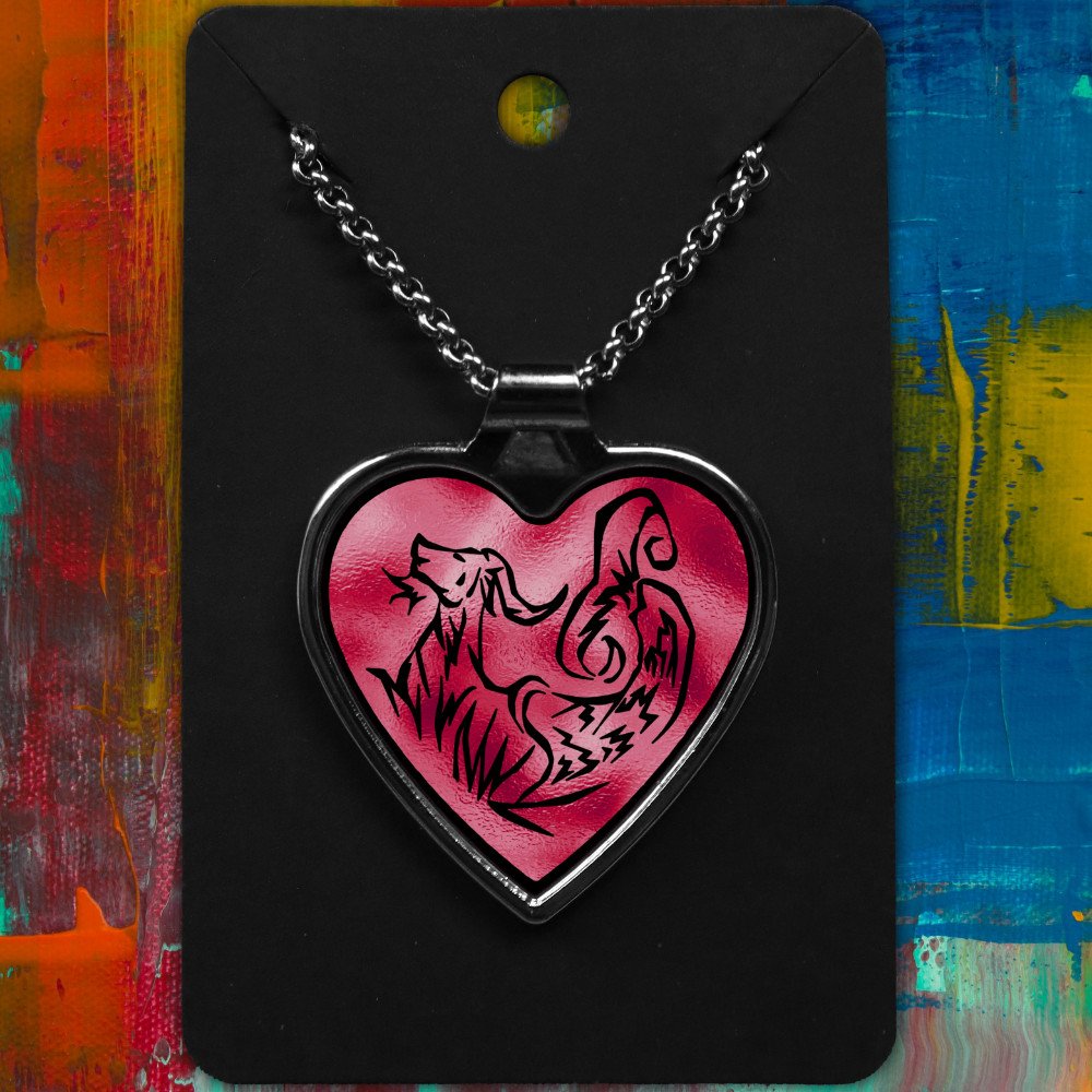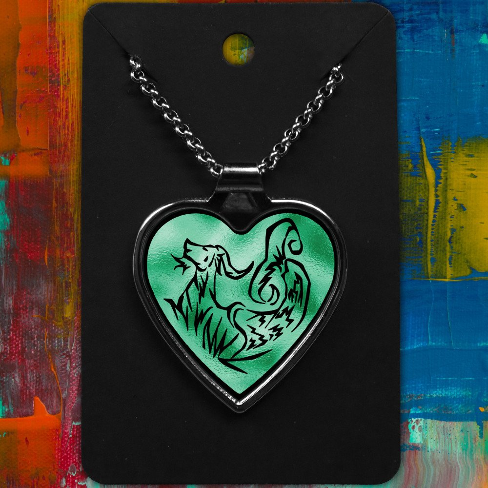 Capricorn metal heart-shaped necklace with a Tribal Design on a shimmering background.