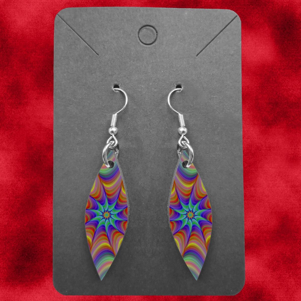 Wooden Sublimated ear ring set with a colourful fractal design printed on both sides of each ear ring