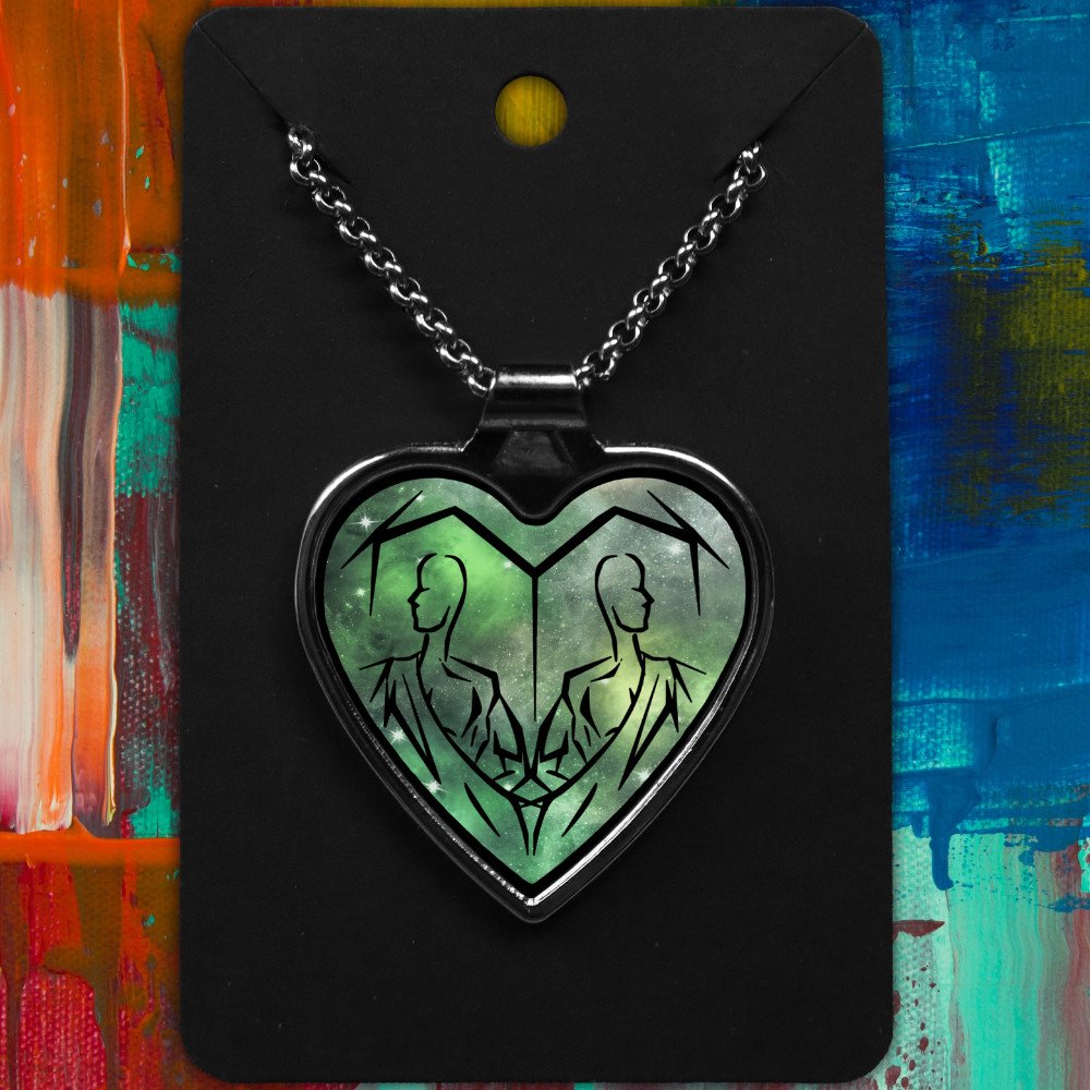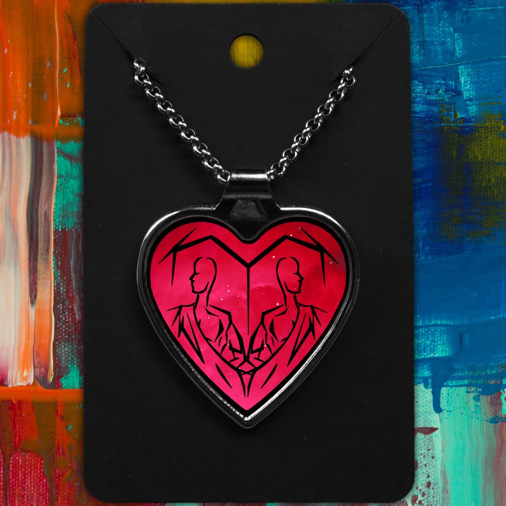 Gemini Metal Heart Necklace Space Tribal Design (Various Colours)