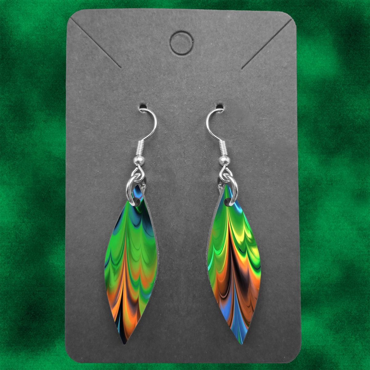 Embrace the vibrant flow of creation with these stunning Fluid Chroma Shard Earrings. The design captures a mesmerizing liquid marble effect, featuring a rich, swirling blend of striking colours. It’s an artwork of elemental forces and pure energy.